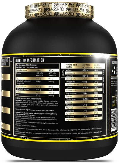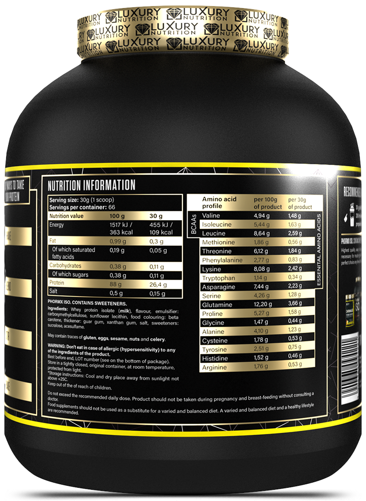 Ingredients: Each 30g serving (1 scoop) of Luxury Nutrition PhormXISO contains:
